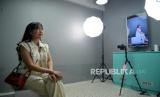 Pengunjung bersiap berfoto di Photobooth Selfie Time di West Mall Grand Indonesia, Jakarta, Sabtu (18/11/2023). (FOTO : Republika/Prayogi)