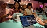 Pengunjung memilih hasil fotonya usai berfoto di Selfie Time di West Mall Grand Indonesia, Jakarta, Sabtu (18/11/2023). (FOTO : Republika/Prayogi)