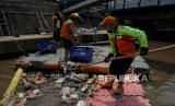 REPUBLIKA.CO.ID, JAKARTA -- Petugas UPK Badan Air Dinas Lingkungan Hidup DKI Jakarta mengangkut sampah di aliran Kali Ciliwung, Jakarta, Ahad (19/11/2023). Pemprov DKI Jakarta mengajak kepada seluruh elemen masyarakat dan dinas terkait untuk melakukan pembersihan saluran air mulai dari selokan hingga kanal atau sungai, sebagai upaya antisipasi potensi banjir akibat timbunan sampah dan endapan lumpur saat curah hujan tinggi.