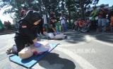 Sosialisasi penanganan korban kecelakaan saat Hari Peringatan Sedunia untuk Korban Lalu Lintas Jalan atau Word Day of Remembrance For Road Traffic Victims (WDOR 2023), saat acara Car Free Day, Dago, Kota Bandung, Ahad (19/11/2023). Kegiatan tersebut digelar untuk mengenang jutaan orang yang menjadi korban kecelakaan lalu lintas dan sebabagi bentuk sosialisai pencegahan dan respons setelah kecelakaan. (FOTO : Edi Yusuf/Republika)