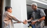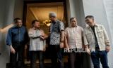 REPUBLIKA.CO.ID, JAKARTA. Calon Presiden Ganjar Pranowo disambut Presiden ke-10 dan ke-12 Jusuf Kalla saat tiba di kediamannya di Jalan Brawijaya Raya No 6, Jakarta Selatan, Ahad (19/11/2023).