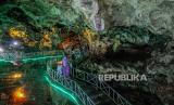 REPUBLIKA.CO.ID, TUBAN -- Pengunjung menikmati suasana Gua Akbar di Tuban, Jawa Timur, Ahad (19/11/2023). Wisata gua yang memiliki lorong berkelok sepanjang 1,2 kilometer disertai stalaktit dan stalagmit yang masih meneteskan air itu berada di tengah kota sehingga mudah untuk diakses wisatawan.