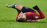 Pemain Spanyol Gavi Paez menahan sakit setelah kakinya cedera saat pertandingan sepak bola kualifikasi grup A Euro 2024 antara Spanyol dan Georgia di Stadion Jose Zorrilla di Valladolid, Spanyol, Senin (20/11/2023)dini hari WIB. (FOTO : AP Photo/Manu Fernandez)