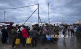 REPUBLIKA.CO.ID, JALUR GAZA -- Warga Palestina yang mengungsi akibat pengeboman Israel di Jalur Gaza mengantre untuk mendapatkan air di kamp pengungsian PBB di kota selatan Khan Younis, Jalur Gaza, Ahad (19/11/2023).