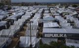 Tenda kamp yang disediakan PBB untuk warga Palestina yang mengungsi akibat pemboman Israel di Jalur Gaza terlihat di Khan Younis, Ahad, (19/11/2023). (FOTO : AP Photo/Fatima Shbair)