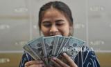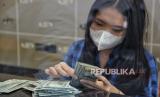 REPUBLIKA.CO.ID, JAKARTA -- Petugas menghitung uang dolar AS di gerai penukaran mata uang asing VIP (Valuta Inti Prima) Money Changer, Jakarta, Jakarta, Senin (20/11/2023).