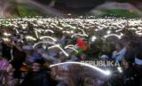 REPUBLIKA.CO.ID,  SERPONG. --  Jamaah Syecher Mania melantunkan sholawat dan menyalakan lampu ponsel saat menghadiri acara Tangsel Bersholawat di Lapangan Sunburst BSD, Tangerang Selatan, Banten, Senin (20/11/2023) malam.