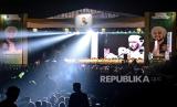 Habib Syech bin Abdul Qodir Assegaf (tengah) melantunkan sholawat saat acara Tangsel Bersholawat di Lapangan Sunburst BSD, Tangerang Selatan, Banten, Senin (20/11/2023)malam. Acara sholawat dalam rangka HUT ke-15 Kota Tangerang Selatan yang dihadiri ribuan jemaah tersebut sekaligus memberikan santunan kepada seribu anak yatim, dan mendoakan korban serangan Israel terhadap warga Palestina. (FOTO : ANTARA FOTO/Sulthony Hasanuddin)
