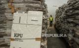REPUBLIKA.CO.ID, MAKASSAR -- Petugas menata logistik Pemilu 2024 di Gudang Logistik KPU Makassar di Makassar, Sulawesi Selatan, Selasa (21/11/2023).