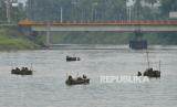 Sejumlah penambang tradisional mengambil pasir dengan menyelam di Sungai Batang Anai, Padang Pariaman, Sumatera Barat, Selasa (21/11/2023). Penambang pasir di sungai itu masih menggunakan alat tradisional untuk mengambil pasir di dasar sungai agar tidak mengeksploitasi lingkungan sehingga mengancam daerah aliran sungai jika dilakukan secara besar-besaran. (FOTO : Antara/Iggoy el Fitra)