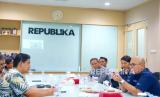 Pemimpin Redaksi Republika Elba Damhuri (Kanan), Ari Respati Direktur Utama ITDC (kiri), saat berbicara kepada jajaran Redaksi Republika, Jakarta, Rabu (22/11/23). Kunjungan dalam rangka memperkenalkan Mandalika menjadi destinasi Utama sport tourism. Ahmad Fauji/Republika (FOTO : Republika/Ahmad fauji)
