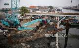 REPUBLIKA.CO.ID, JAKARTA. -- Sejumlah pekerja menggunakan eskavator dan crane menyelesaikan pembangunan tanggul pantai di Cilincing, Jakarta, Kamis (23/11/2023).