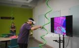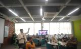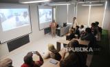 Mahasiswa jurusan Psikologi menjelaskan pembelajaran dengan Artificial Intelligence kepada media di kampus Binus University Bekasi, Jumat (24/11/2023). Binus University menerapkan Pendidikan 5.0 bukan hanya sekadar integrasi teknologi dalam pembelajaran, melainkan sebuah paradigma pendidikan yang holistik, menggabungkan kecerdasan buatan, pengembangan kreativitas, dan pemberdayaan individu. (FOTO : Republika/Tahta Aidilla)