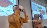 Direktur Kampus Binus University Bekasi Gatot Soepriyanto (kiri) menjelaskan pembelajaran dengan Artificial Intelligence di kampus Binus University Bekasi, Jumat (24/11/2023).Binus University menerapkan Pendidikan 5.0 bukan hanya sekadar integrasi teknologi dalam pembelajaran, melainkan sebuah paradigma pendidikan yang holistik, menggabungkan kecerdasan buatan, pengembangan kreativitas, dan pemberdayaan individu. (FOTO : Republika/Tahta Aidilla)