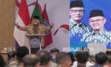 REPUBLIKA.CO.ID, SURABAYA -- Calon presiden nomor urut 2 Prabowo Subianto menjawab pertanyaan panelis saat menghadiri Dialog Publik di Universitas Muhammadiyah (UM) Surabaya, Jawa Timur, Jumat (24/11/2023).