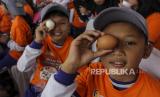REPUBLIKA.CO.ID, SUKABUMI -- Sejumlah siswa mengikuti kegiatan gerakan makan telur dan minum susu di Kota Sukabumi, Jawa Barat, Sabtu (25/11/2023). Gerakan kampanye yang diikuti 300 siswa tersebut upaya untuk pemenuhan gizi protein hewani guna mencegah stunting serta membentuk generasi yang unggul dan berkualitas.