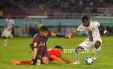 REPUBLIKA.CO.ID, SURAKARTA -- Timnas U17 Mali berhadapan dengan Timnas U17 Maroko pada pertandingan Perempatfinal Piala Dunia U17 2023 di Stadion Manahan, Surakarta, Jawa Tengah, Sabtu (25/11/2023). Mali memastikan melaju ke babak Semifinal usai mengalahkan Maroko dengan skor tipis 1-0. Gol tunggal Mali dicetak oleh kapten tim Ibrahim Diarra.