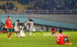 Pemain Timnas U17 Mali menghibur bek Timnas U17 Maroko Chllaghmo usai pertandingan Perempatfinal Piala Dunia U17 2023 di Stadion Manahan, Surakarta, Jawa Tengah, Sabtu (25/11/2023). Mali memastikan melaju ke babak Semifinal usai mengalahkan Maroko dengan skor tipis 1-0. Gol tunggal Mali dicetak oleh kapten tim Ibrahim Diarra. (FOTO : Republika/Wihdan Hidayat)