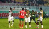 Selebrasi pemain Timnas U17 Mali usai mengalahkan Timnas U17 Maroko pada pertandingan Perempatfinal Piala Dunia U17 2023 di Stadion Manahan, Surakarta, Jawa Tengah, Sabtu (25/11/2023). Mali memastikan melaju ke babak Semifinal usai mengalahkan Maroko dengan skor tipis 1-0. Gol tunggal Mali dicetak oleh kapten tim Ibrahim Diarra. (FOTO : Republika/Wihdan Hidayat)
