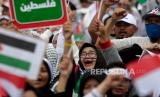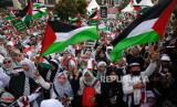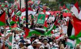 REPUBLIKA.CO.ID, DEPOK -- Ribuan massa menggelar aksi solidaritas terhadap rakyat Palestina di Depok, Jawa Barat, Ahad (26/11/2023). Massa mengutuk genosida Israel terhadap rakyat Palestina di Gaza, yang telah menelan korban sipil meninggal dunia mendekati angka 15 ribu orang. Sebagian besar korban meninggal dunia terdiri dari anak-anak.