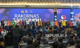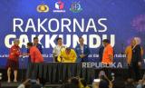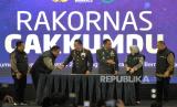REPUBLIKA.CO.ID,JAKARTA -- Ketua Bawaslu RI Rahmat Bagja (tiga kiri) serta para Anggota Bawaslu berbincang bersama Kapolri Jenderal Pol Listyo Sigit Prabowo dan Panglima TNI Jenderal TNI Agus Subiyanto usai menandatangani komitmen netralitas TNI-Polri dalam Pemilu 2024 saat acara Rakornas Gakkumdu di Jakarta ,Senin (27/11/2023).