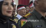 REPUBLIKA.CO.ID,BANDUNG -- Pj Gubernur Jawa Barat Bey Triadi Machmudin (ketiga kiri) beserta jajaran menghadiri Deklarasi Damai Relawan Capres Cawapres Pemilu 2024 di GOR Saparua, Bandung, Jawa Barat, Senin (27/11/2023).