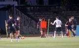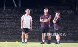 Pelatih Timnas U17 Jerman, Christian Wueck (kiri) berbincang dengan staff pelatih saat latihan jelang laga Semifinal Piala Dunia U17 di Stadion Sriwedari, Surakarta, Jawa Tengah, Senin (27/11/2023). Pada babak Semifinal Jerman akan bersua dengan tim favorit juara yakni Argentina yang berhasil menyingkirkan Brazil pada Perempatfinal. Sedangkan Jerman melaju ke Semifinal usai mengalahkan Spanyol. (FOTO : Republika/Wihdan Hidayat)