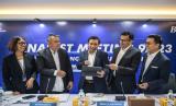 Direktur Utama PT Bank Tabungan Negara (Persero) Tbk. Nixon LP Napitupulu (ketiga kiri) didampingi Jajaran Direksi Bank BTN Elisabeth Novie Riswanti (kiri), Oni Febriarto R. (kedua kiri), Nofry Rony Poetra (kedua kanan), dan Setiyo Wibowo (kanan) tersenyum melihat laporan keuangan Bank BTN per kuartal III/2023. (FOTO : Dok. Republika)