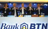 REPUBLIKA.CO.ID,JAKARTA -- Direktur Utama PT Bank Tabungan Negara (Persero) Tbk. Nixon LP Napitupulu (ketiga kiri) didampingi Jajaran Direksi Bank BTN Elisabeth Novie Riswanti (kiri), Oni Febriarto R. (kedua kiri), Nofry Rony Poetra (kedua kanan), dan Setiyo Wibowo (kanan) tersenyum melihat laporan keuangan Bank BTN per kuartal III/2023.
