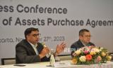 President Director & CEO Indosat Ooredoo Hutchison (IOH) Vikram Sinha dan Executive Chairman MNC Group Hary Tanoesoedibjo saat konferensi pers di Jakarta, Senin (27/11/2023). Indosat Ooredoo Hutchison (Indosat atau IOH) mengumumkan kesuksesan kolaborasi dengan Asianet (Lightstorm group company) dan PT MNC Kabel Mediacom (MNC Play) dalam menghadirkan pengalaman digital kelas dunia kepada para pelanggan. (FOTO : Republika/Prayogi)