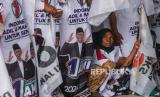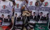 Sejumlah pendukung mengenakan spanduk di badannya saat menunggu kedatangan Calon Presiden Anies Baswedan di kawasan Tanah Merah, Jakarta, Selasa (28/11/2023). Anies Baswedan melakukan kampanye Pilpres 2024 pertamanya dengan mengunjungi dan menyapa warga Tanah Merah untuk meraih suara masyarakat. (FOTO : Republika/Putra M. Akbar)