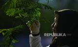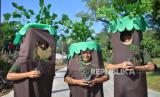 REPUBLIKA.CO.ID,PADANG -- Karyawan yang menggunakan kostum pohon memegang bibit kaliandra sebelum ditanam di lingkungan perusahaan PT Semen Padang, di Indarung, Padang, Sumatra Barat, Selasa (28/11/2023).