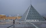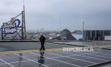 Petugas beraktivitas di dekat panel surya di atap Trans Studio Mall Bandung, Bandung, Jawa Barat, Selasa (28/11/2023). Trans Studio Mall bersama Xurya memasang Pembangkit Listrik Tenaga Surya (PLTS) Atap yang dapat menghasilkan energi bersih sebanyak 1,5 juta kWh per tahun. Energi tersebut setara dengan penekanan emisi karbon sebesar 1,4 juta kilogram per tahun. PLTS Atap itu mampu memenuhi sekitar 11 persen kebutuhan listrik di mal tersebut. (FOTO : REPUBLIKA/ABDAN SYAKURA)