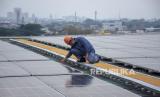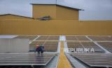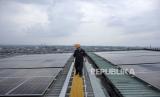 REPUBLIKA.CO.ID, BANDUNG. -- Petugas beraktivitas di dekat panel surya di atap Trans Studio Mall Bandung, Bandung, Jawa Barat, Selasa (28/11/2023).