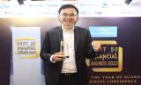 Direktur Keuangan BRI Life Lim Chet Ming memperlihatkan plakat penghargaan Best 50 Financial Institution Awards 2023 Title: Best Brand Popularity Life Insurance >10T Category, yang diselenggarakan dalam acara 5 th Anniversary Best 50 Financial Institution Awards 2023: Making 2024 The Year of Economic and Business Confidence, oleh The Iconomic, di Jakarta, Selasa (28/11/2023). (FOTO : Dok. Republika)