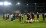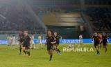 Pemain Timnas U17 Jerman menghampiri suporter usai menang adu pinalti dengan Timnas U17 Argentina pada pertandingan Semifinal Piala Dunia U17 2023 di Stadion Manahan, Surakarta, Jawa Tengah, Selasa (28/11/2023). Jerman bersusah payah mengalahkan Argentina melalui babak adu pinalti 4-2, usai bermain imbang 3-3. Jerman memastikan melaju ke babak final yang diadakan pada Sabtu (3/12/2023) mendatang. (FOTO : Republika/Wihdan Hidayat)