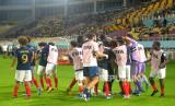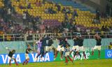 Pemain Timnas U17 Perancis melakukan selebrasi di depan penonton usai mengalahkan Timnas U17 Mali pada pertandingan Semifinal Piala Dunia U17 2023 di Stadion Manahan, Surakarta, Jawa Tengah, Selasa (28/11/2023). Perancis memastikan diri ke final usai mengalahkan Mali 2-1. Perancis akan bertemu dengan Jerman di babak final dan Mali ditunggu Argentina pada perebutan tempat ke tiga. (FOTO : Republika/Wihdan Hidayat)