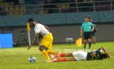 Penyerang Timnas U17 Perancis, Joan Tincres terjatuh usai dilanggar bek kanan Timnas U17 Mali Moussa Diop pada pertandingan Semifinal Piala Dunia U17 2023 di Stadion Manahan, Surakarta, Jawa Tengah, Selasa (28/11/2023). Perancis memastikan diri ke final usai mengalahkan Mali 2-1. Perancis akan bertemu dengan Jerman di babak final dan Mali ditunggu Argentina pada perebutan tempat ke tiga. (FOTO : Republika/Wihdan Hidayat)