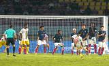 Penyerang Timnas U17 Mali, Mahamoud Barry mengambil tendangan bebas ke gawang Timnas U17 Perancis pada pertandingan Semifinal Piala Dunia U17 2023 di Stadion Manahan, Surakarta, Jawa Tengah, Selasa (28/11/2023). Perancis memastikan diri ke final usai mengalahkan Mali 2-1. Perancis akan bertemu dengan Jerman di babak final dan Mali ditunggu Argentina pada perebutan tempat ke tiga. (FOTO : Republika/Wihdan Hidayat)