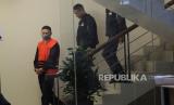 REPUBLIKA.CO.ID, JAKARTA -- Tersangka Direktur Komersial PT Manunggaling Rizki Karyatama Teknics (Marktel) Budi Santika dikawal menuju ruang konferensi pers terkait penetapan dan penahanan tersangka di Gedung Merah Putih KPK, Jakarta, Selasa (28/11/2023).