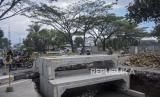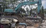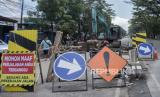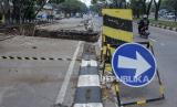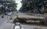 REPUBLIKA.CO.ID, BANDUNG -- Kendaraan melintas di samping proyek perbaikan cross drain (saluran drainase bawah tanah) di kawasan Gedebage, Bandung, Jawa Barat, Rabu (29/11/2023).