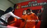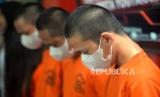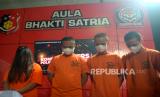 Tersangka tindak pidana perdagangan orang (TPPO) dihadiri saat rilis di Polresta Yogyakarta, Rabu (29/11/2023). Sebanyak empat tersangka kasus TPPO diamankan Polresta Yogyakarta karena eksploitasi secara seksual terhadap anak. Kedua korban yang diamankan berasal dari DKI Jakarta dan dibawah umur, KR (15) dan MC (14) menjadi pekerja seks komersial melalui aplikasi dan tidak diberikan gaji oleh tersangka. Akibat perbuatannya tersangka diancam Pasal 88 Jo 761 UU No.35/ 2014 dengan ancaman penjara maksimal 10 tahun dan denda paling banyak Rp 200 juta. (FOTO : Republika/Wihdan Hidayat)