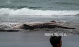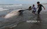 REPUBLIKA.CO.ID, CILACAP -- Warga berupaya menarik bangkai hiu tutul (Rhincodon typus) yang terdampar di pantai Wagir Indah, Adipala, Cilacap, Jawa Tengah, Rabu (29/11/2023).