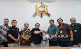 REPUBLIKA.CO.ID,JAKARTA -- Pemimpin Redaksi Republika Elba Damhuri (ketiga kanan) bersama Kepala Bagian Hubungan Antarlembaga Komisi Pemilihan Umum (KPU) Dohardo Pakpahan (tengah) didampingi Direktur Republika Nur Hasan Murtiaji (ketiga kiri) berfoto bersama saat berkunjung ke kantor KPU, Jakarta, Rabu (29/11/2023).