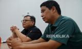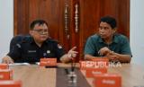 Pemimpin Redaksi Republika, Elba Damhuri (kanan) berbincang bersama Kepala Bagian Hubungan Antar Lembaga Komisi Pemilihan Umum (KPU), Dohardo Pakpahan (kiri) saat berkunjung ke kantor KPU, Jakarta, Rabu (29/11/2023). Kunjungan tersebut membahas tentang peran media dan KPU dalam mengedukasi masyarakat menghadapi Pemilu 2024 mendatang. (FOTO : Republika/Thoudy Badai)