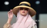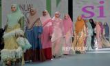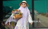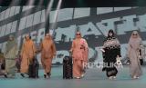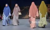 Model memperagakan busana pada Si.Se.Sa Annual Fashion Show 2023 di Jakarta, Rabu (29/11/2023). Peragaan koleksi busana bertajuk BETWEEN THE LANDS ini lahir dari inspirasi liburan di daerah pesisir dengan suara deburan ombak yang berderu riang di atas pasir putih di antara pulau-pulau cantik ala Mediterania. Koleksi BETWEEN THE LANDS menjaga konsistensi dan wibawa keanggunan garis busana syari yang panjang tertutup,longgar, bertumpuk-tumpuk namun tetap nyaman, effortless dan berkesan ringan. (FOTO : Republika/Prayogi)