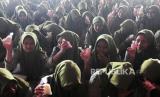 REPUBLIKA.CO.ID, KUDUS -- Sejumlah santri menunjukkan susu kemasan saat gerakan makan siang dan minum susu di Pondok Pesantren Assaidiyah, Mejobo, Kudus, Jawa Tengah, Rabu (29/11/2023).