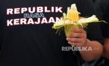 Mahasiswa membawa jagung saat mengikuti mimbar rakyat Tahta Untuk Rakyat di Monumen Serangan Umum 1 Maret, Yogyakarta, Rabu (29/11/2023). Pada aksinya mahasiswa membawa jagung sebagai bentuk umur demokrasi di Indonesia yang hanya sebentar atau seumur jagung. (FOTO : Republika/Wihdan Hidayat)