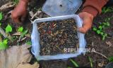 REPUBLIKA.CO.ID,BOYOLALI -- Warga mencari ulat jati (Hyblaea puera) di kawasan hutan pohon jati Desa Ngaren, Juwangi, Boyolali, Jawa Tengah, Kamis (30/11/2023).