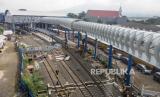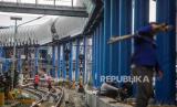 REPUBLIKA.CO.ID, BOGOR. -- Pekerja beraktivitas di area proyek pembangunan jembatan layang penghubung (Skybridge) antara Stasiun Bogor dan Stasiun Paledang di Kota Bogor, Jawa Barat, Kamis (30/11/2023).
